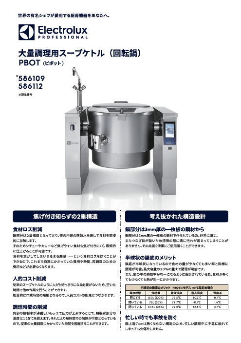 大量調理用スープケトル(回転鍋)PBOT チラシ