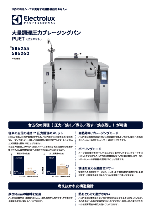 大量調理圧力ブレージングパンPUET チラシ