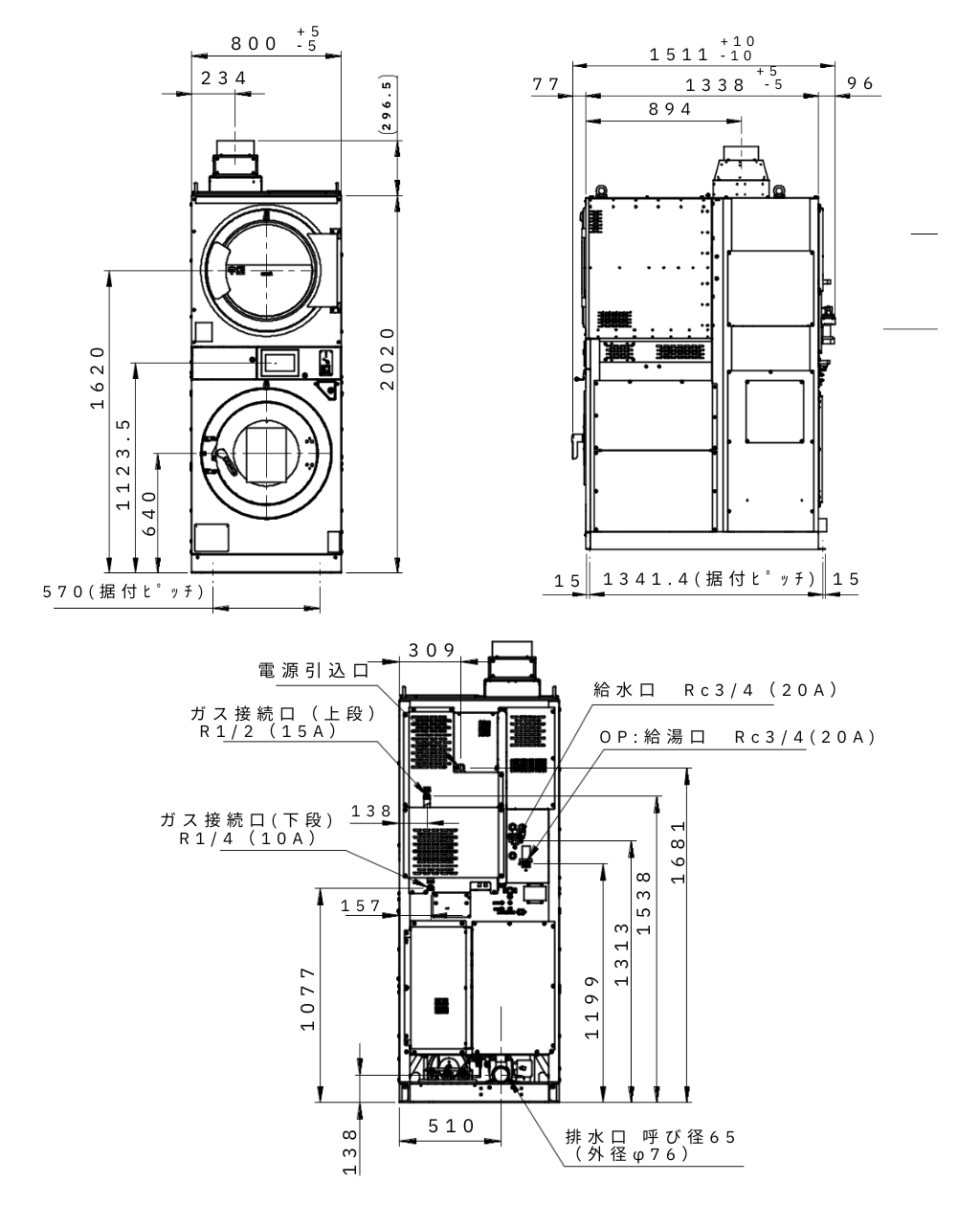 2段式ガス洗濯乾燥機(Stackコンボモデル)ST-155W